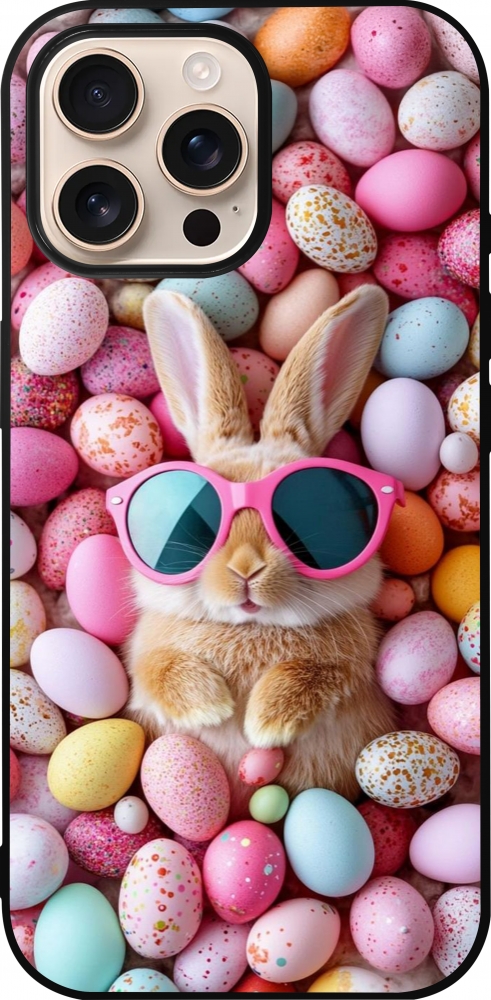 Coque iPhone 16 Pro Max - Silicone rigide noir Easter 2026 Rabbit fun
