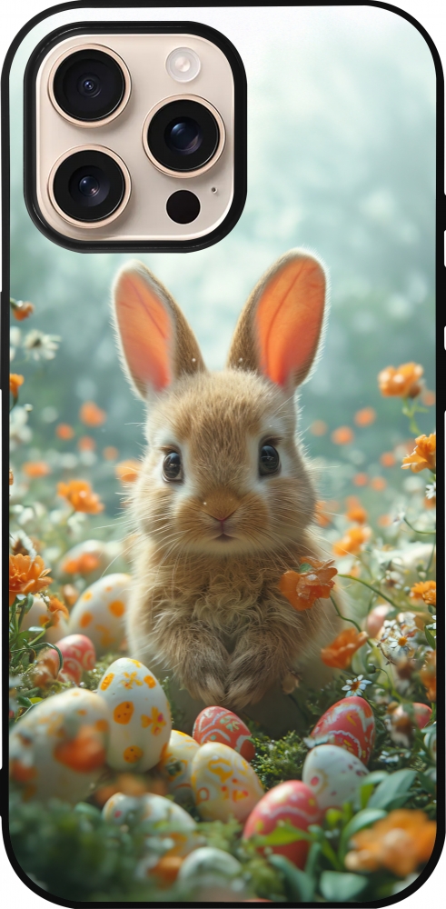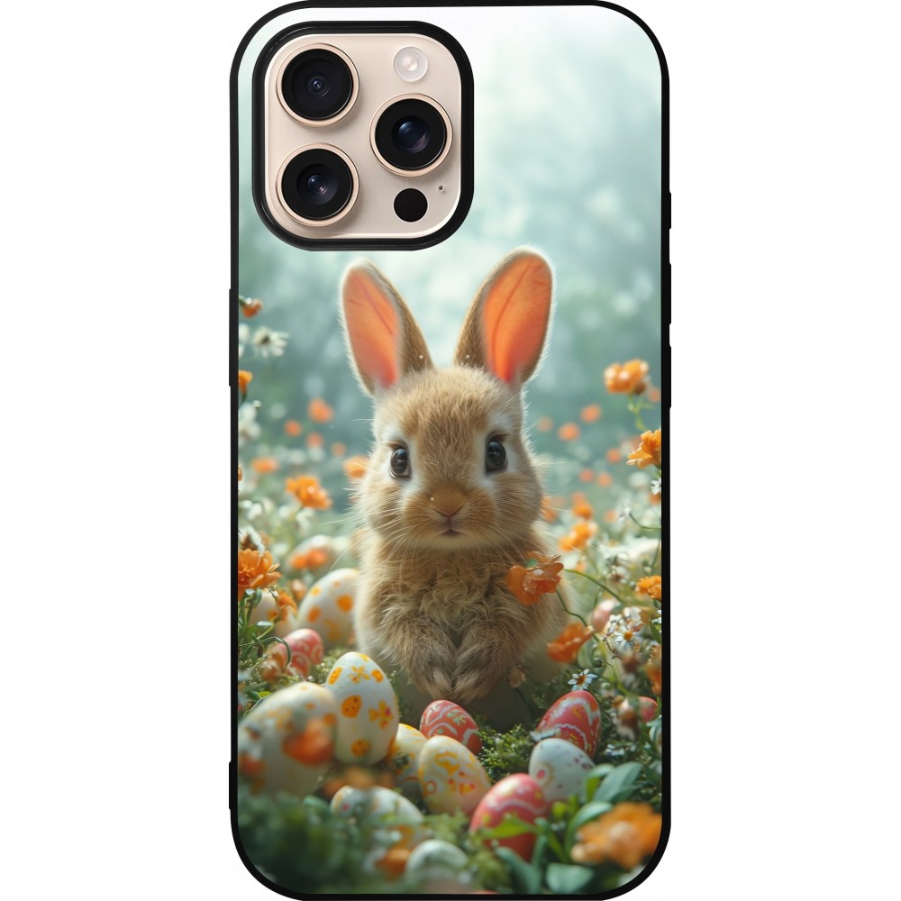 Coque iPhone 16 Pro Max - Silicone rigide noir Easter 2026 Rabbit in the garden
