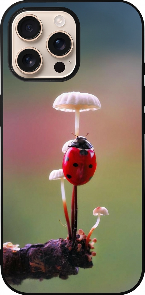 Coque iPhone 16 Pro Max - Silicone rigide noir Ladybird on a mushroom 2026