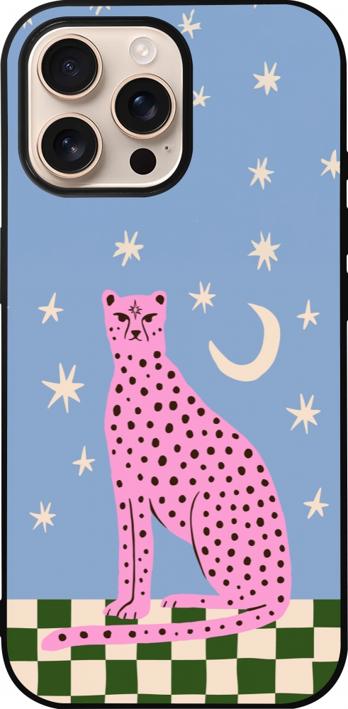 Coque iPhone 16 Pro Max - Silicone rigide noir Pink leopard with stars 2026