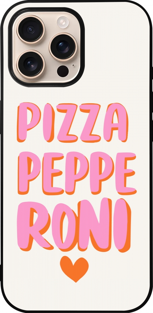 Coque iPhone 16 Pro Max - Silicone rigide noir Pizza pepperoni 2026