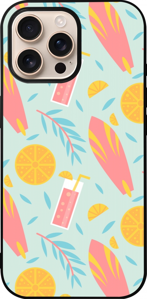 Coque iPhone 16 Pro Max - Silicone rigide noir Summer 2025 Pattern citron