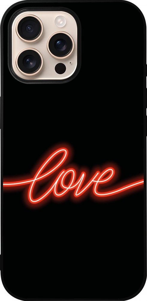 Coque iPhone 16 Pro Max - Silicone rigide noir Valentine 2023 neon love