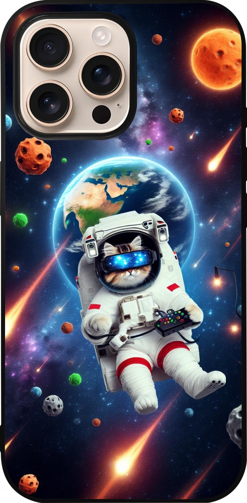 Coque iPhone 16 Pro Max - Silicone rigide noir VR SpaceCat Odyssey