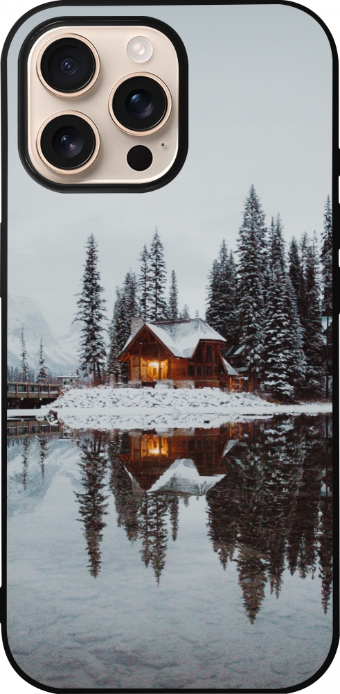 Coque iPhone 16 Pro Max - Silicone rigide noir Winter 25 Winter house forest afternoon