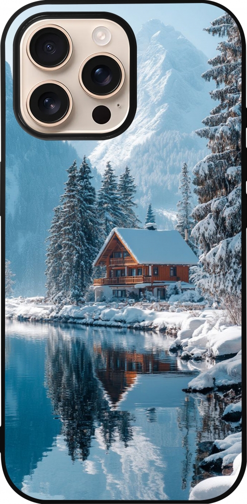 Coque iPhone 16 Pro Max - Silicone rigide noir Winter 25 Winter house forest day