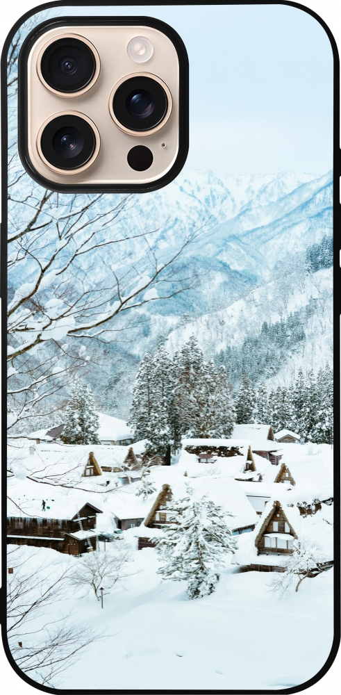 Coque iPhone 16 Pro Max - Silicone rigide noir Winter 25 Winter snowy landscape
