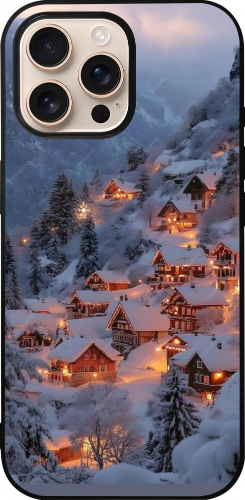 Coque iPhone 16 Pro Max - Silicone rigide noir Winter 25 Winter snowy village