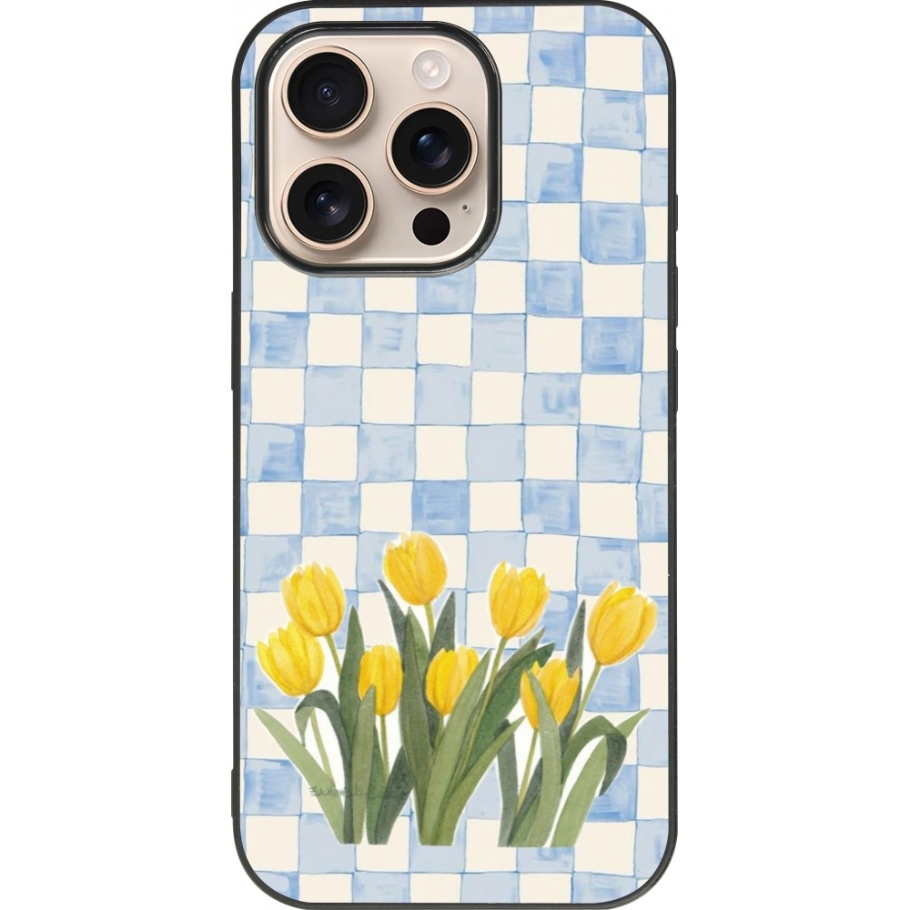 Coque iPhone 16 Pro - Silicone rigide noir Blue vichy tulips 2026