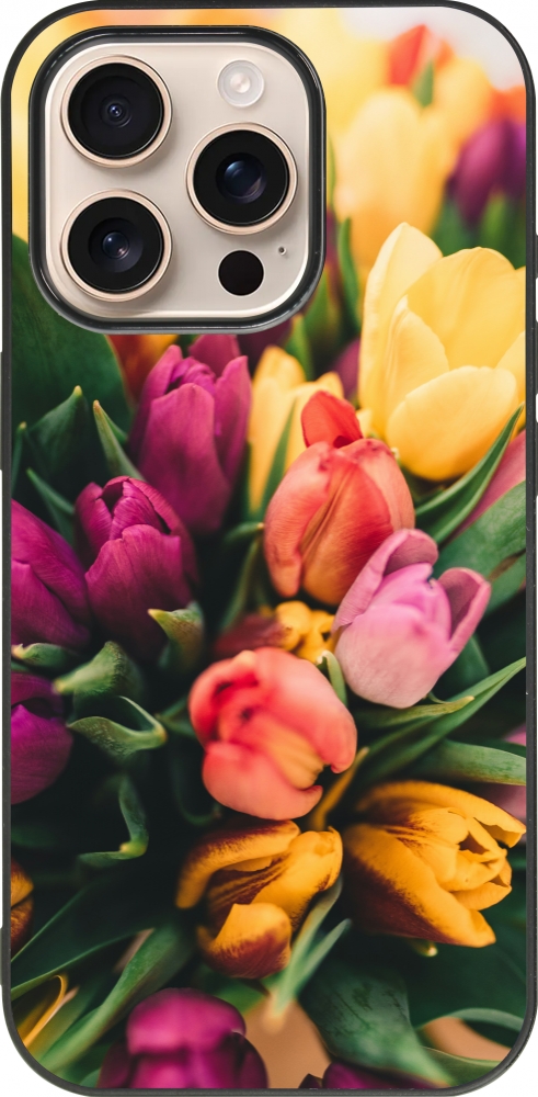 Coque iPhone 16 Pro - Silicone rigide noir Bouquet of tulips 2026