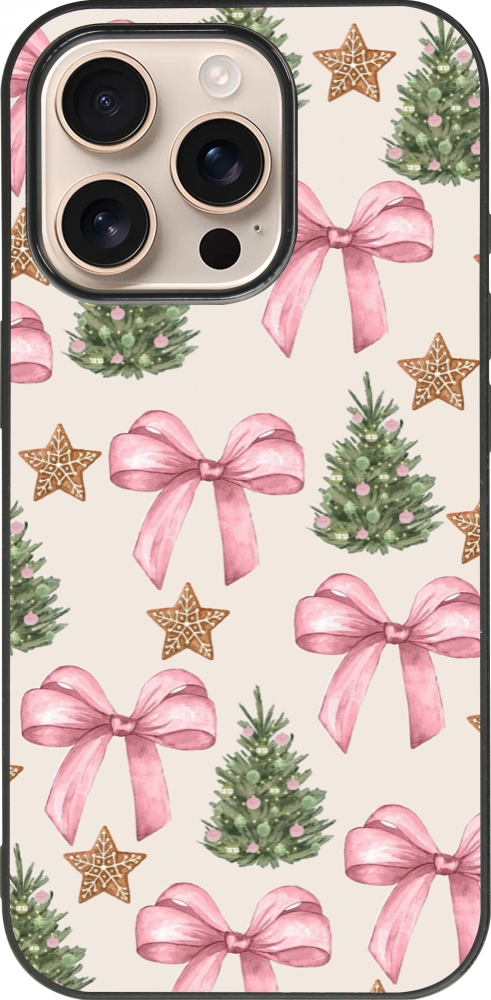 Coque iPhone 16 Pro - Silicone rigide noir Christmas 25 Vintage Ribbons
