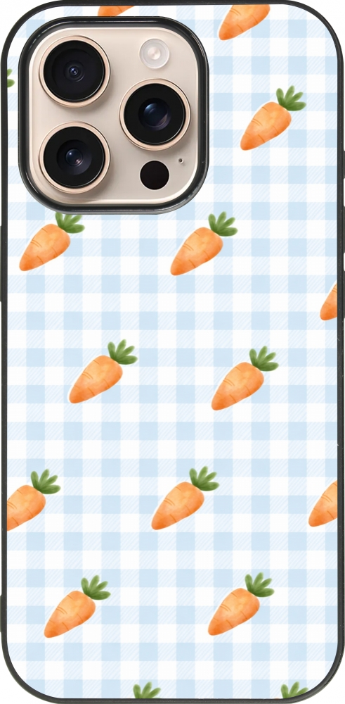 Coque iPhone 16 Pro - Silicone rigide noir Easter 2026 Pattern carrots