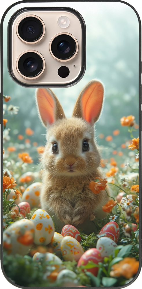 Coque iPhone 16 Pro - Silicone rigide noir Easter 2026 Rabbit in the garden