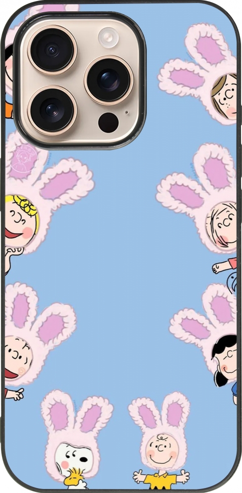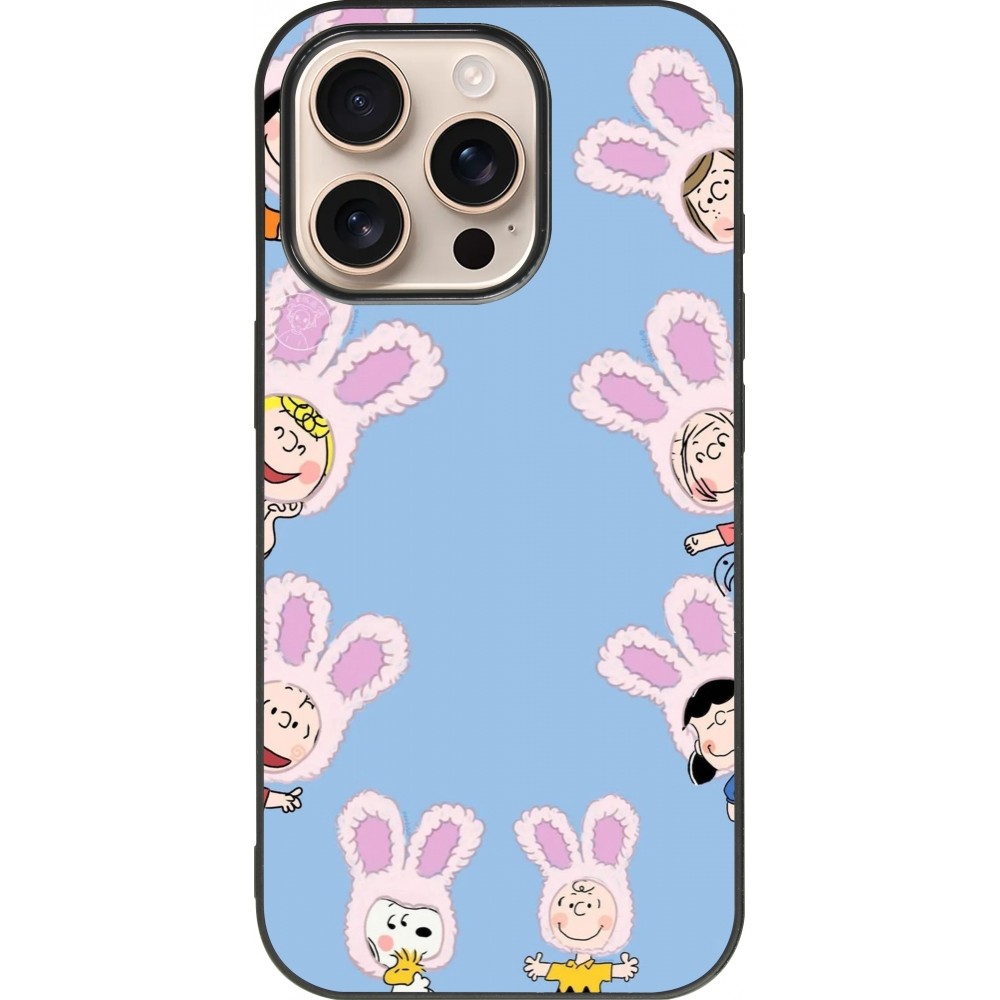 Coque iPhone 16 Pro - Silicone rigide noir Easter 2026 Snoopy