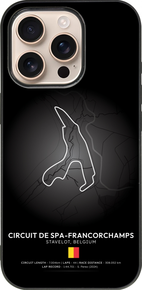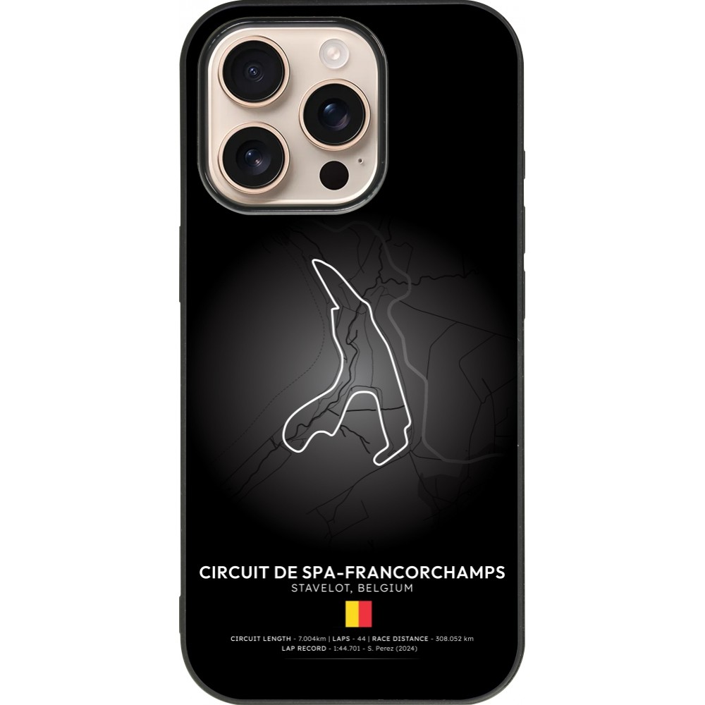 Coque iPhone 16 Pro - Silicone rigide noir F1 Track 2025 Belgium