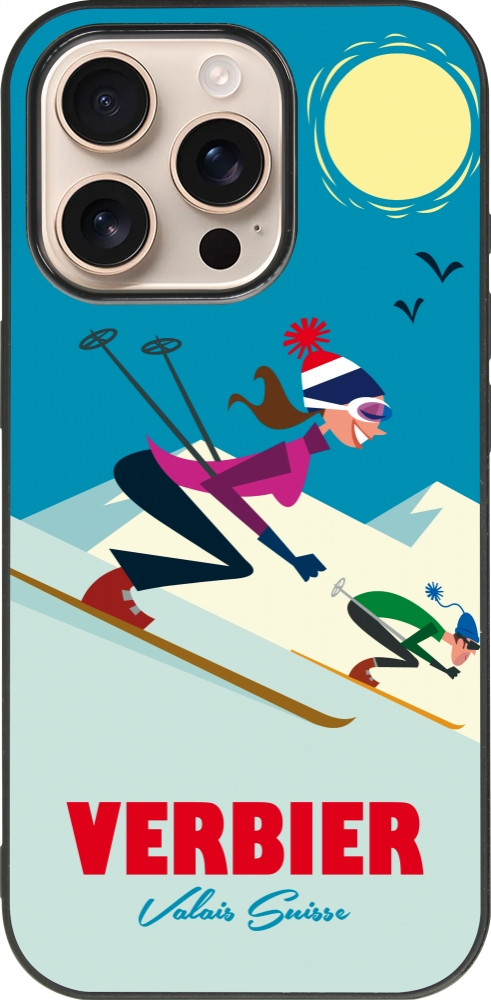 Coque iPhone 16 Pro - Silicone rigide noir Verbier Ski Downhill
