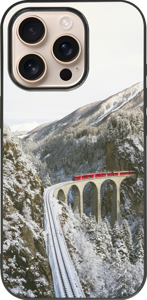 Coque iPhone 16 Pro - Silicone rigide noir Winter 25 Winter polar express