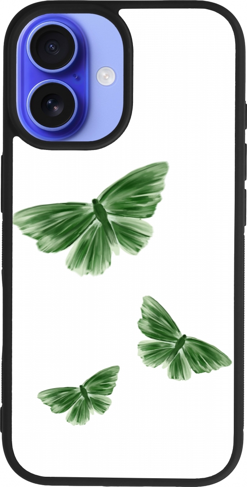 Coque iPhone 16 - Silicone rigide noir Butterflies 2026
