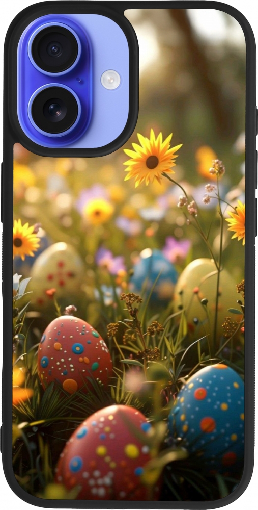 Coque iPhone 16 - Silicone rigide noir Easter 2026 Decorated eggs