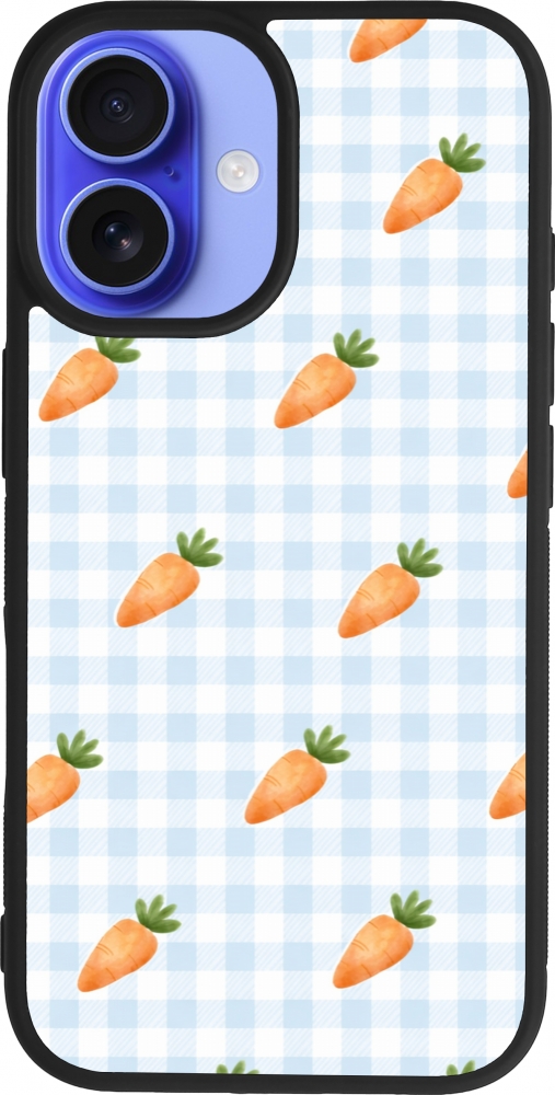 Coque iPhone 16 - Silicone rigide noir Easter 2026 Pattern carrots