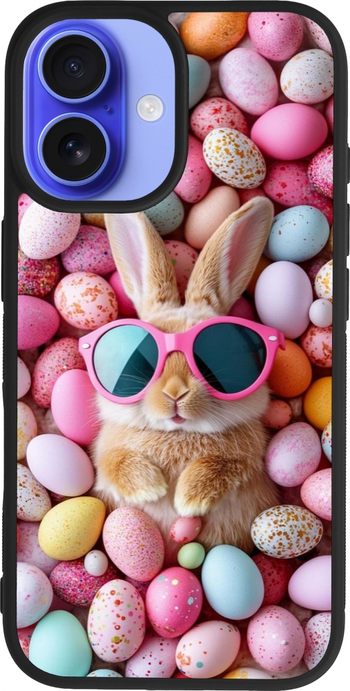 Coque iPhone 16 - Silicone rigide noir Easter 2026 Rabbit fun