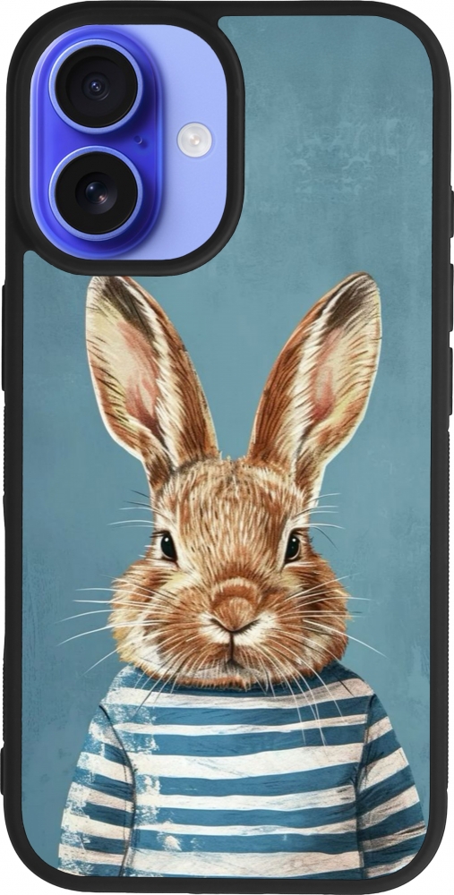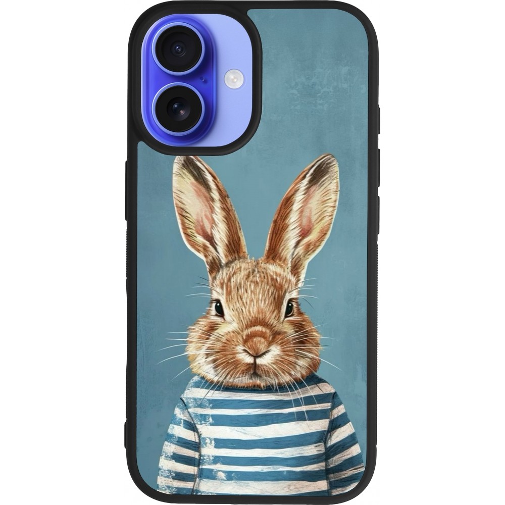 Coque iPhone 16 - Silicone rigide noir Easter 2026 Rabbit navy