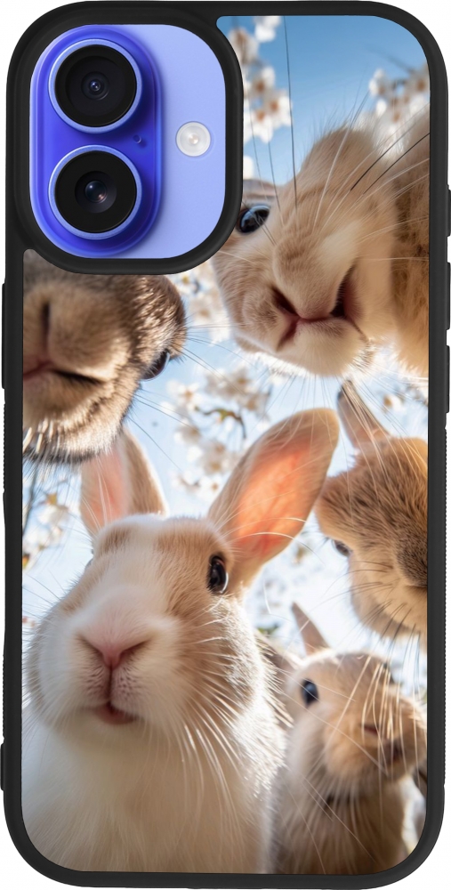 Coque iPhone 16 - Silicone rigide noir Easter 2026 Rabbits