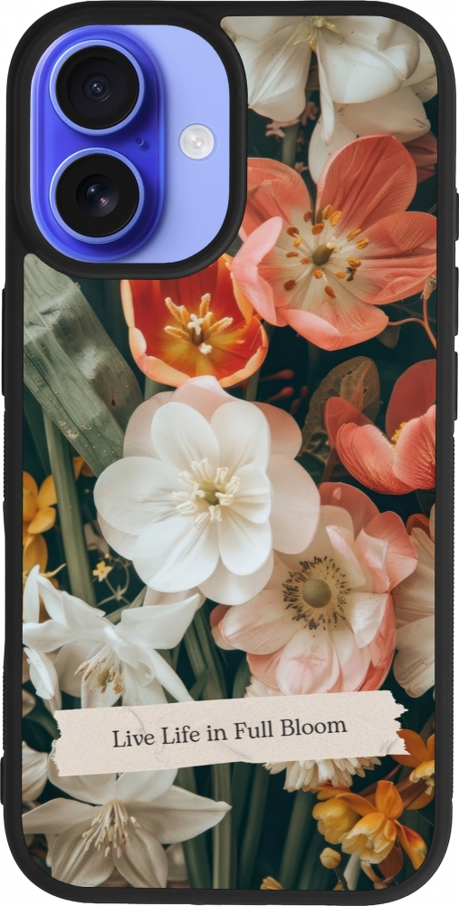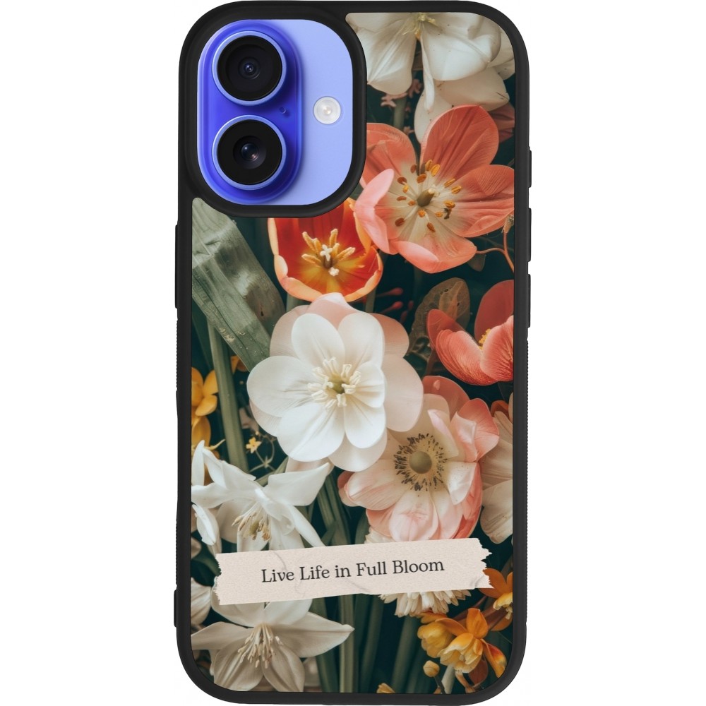 Coque iPhone 16 - Silicone rigide noir Full Bloom 2026