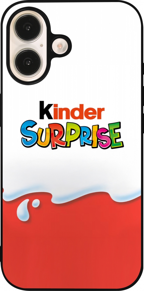 Coque iPhone 16 - Silicone rigide noir Kinder Surprise