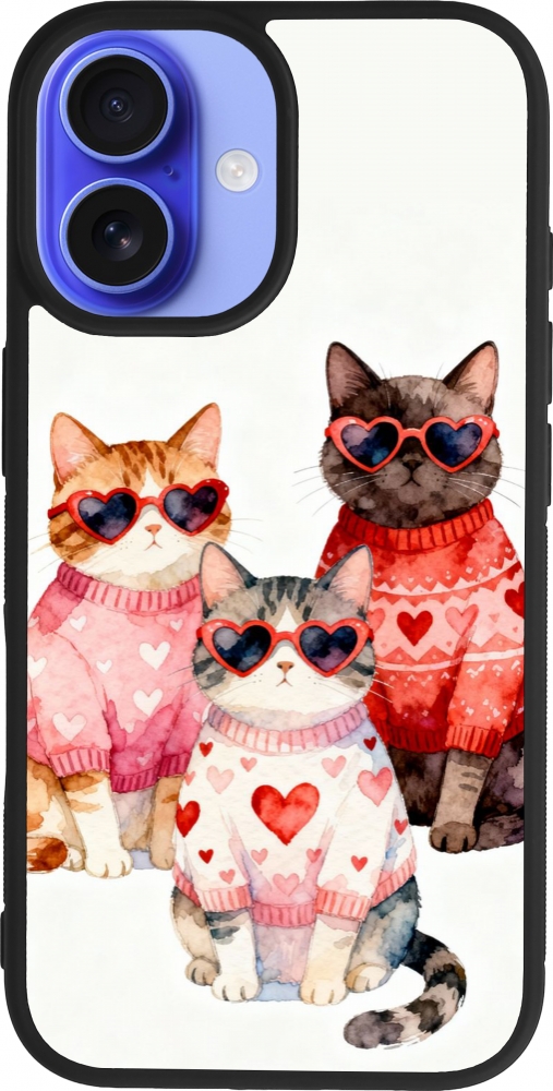 Coque iPhone 16 - Silicone rigide noir Saint Valentines Day 26 Cat Love