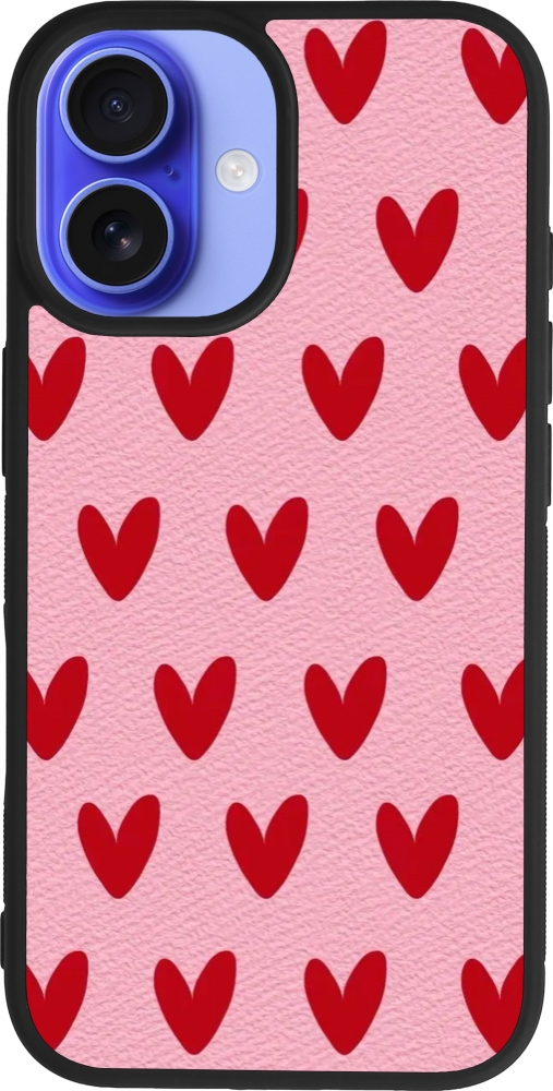 Coque iPhone 16 - Silicone rigide noir Saint Valentines Day 26 Pattern heart