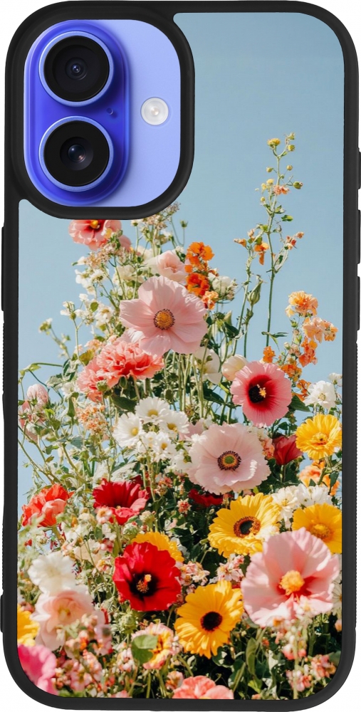 Coque iPhone 16 - Silicone rigide noir Spring flowers 2026