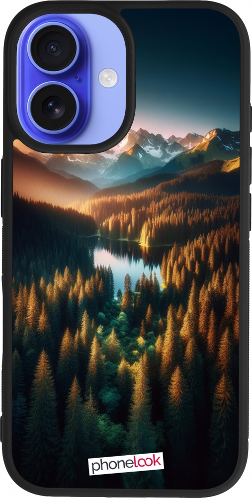 Coque iPhone 16 - Silicone rigide noir Sunset Forest Lake