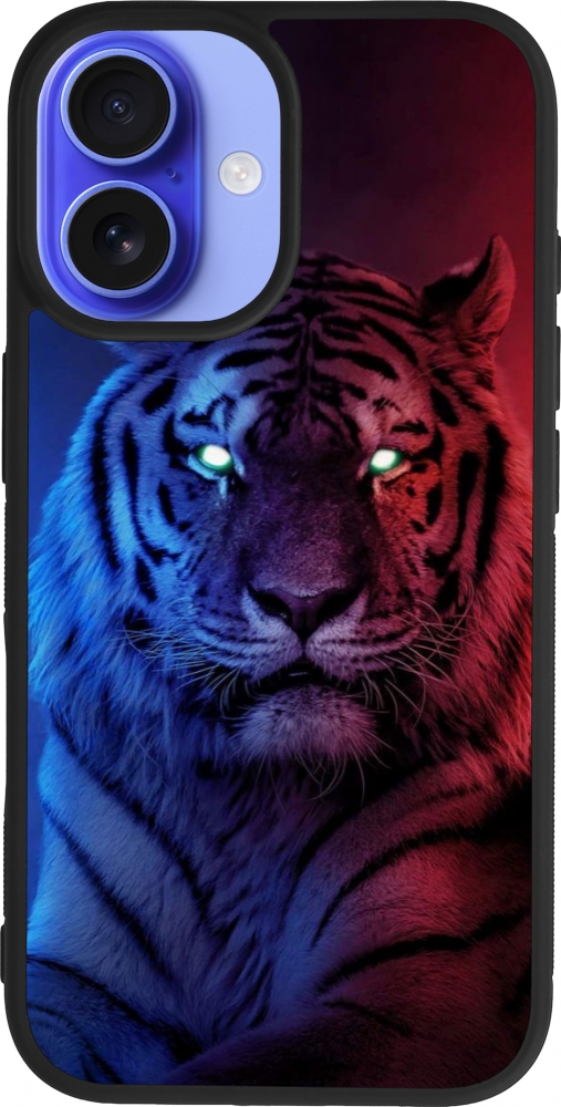 Coque iPhone 16 - Silicone rigide noir Tiger Blue Red