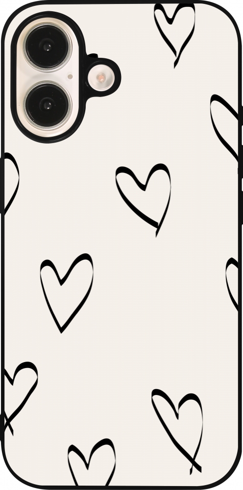 Coque iPhone 16 - Silicone rigide noir Valentine 2023 minimalist hearts