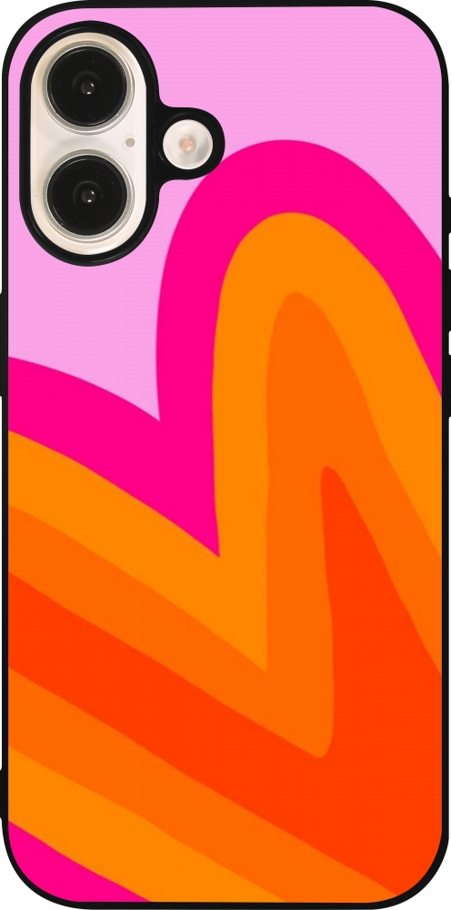 Coque iPhone 16 - Silicone rigide noir Valentine 2024 heart gradient
