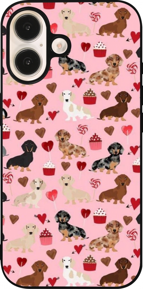 Coque iPhone 16 - Silicone rigide noir Valentine 2024 puppy love
