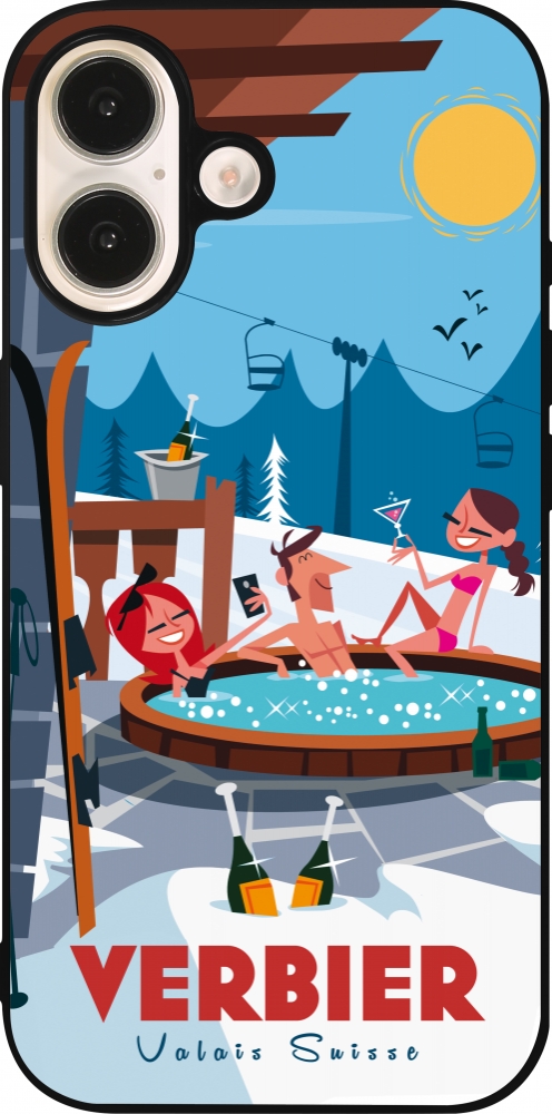 Coque iPhone 16 - Silicone rigide noir Verbier Mountain Jacuzzi