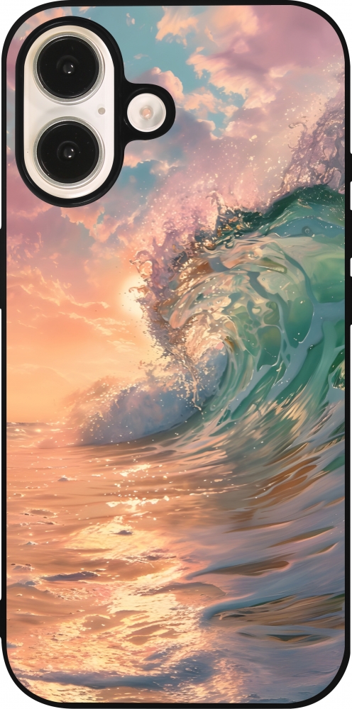 Coque iPhone 16 - Silicone rigide noir Wave Sunset