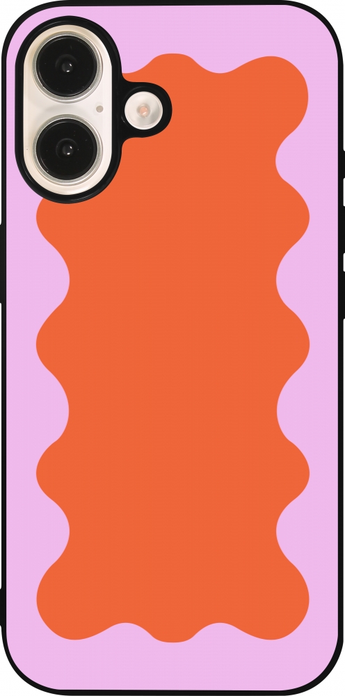 Coque iPhone 16 - Silicone rigide noir Wavy Rectangle Orange Pink