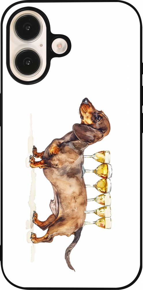 Coque iPhone 16 - Silicone rigide noir Wine Teckel