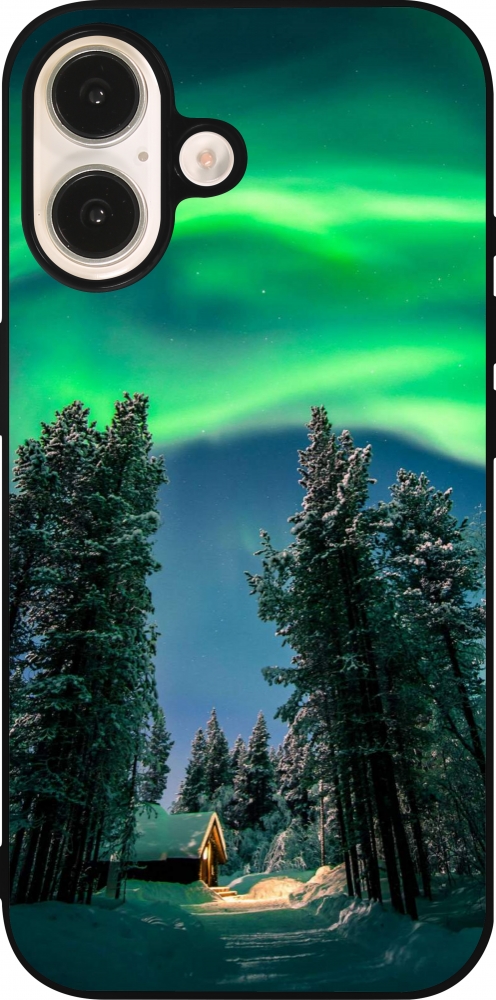 Coque iPhone 16 - Silicone rigide noir Winter 22 Northern Lights