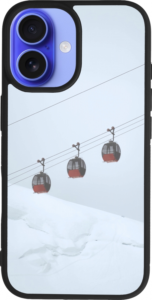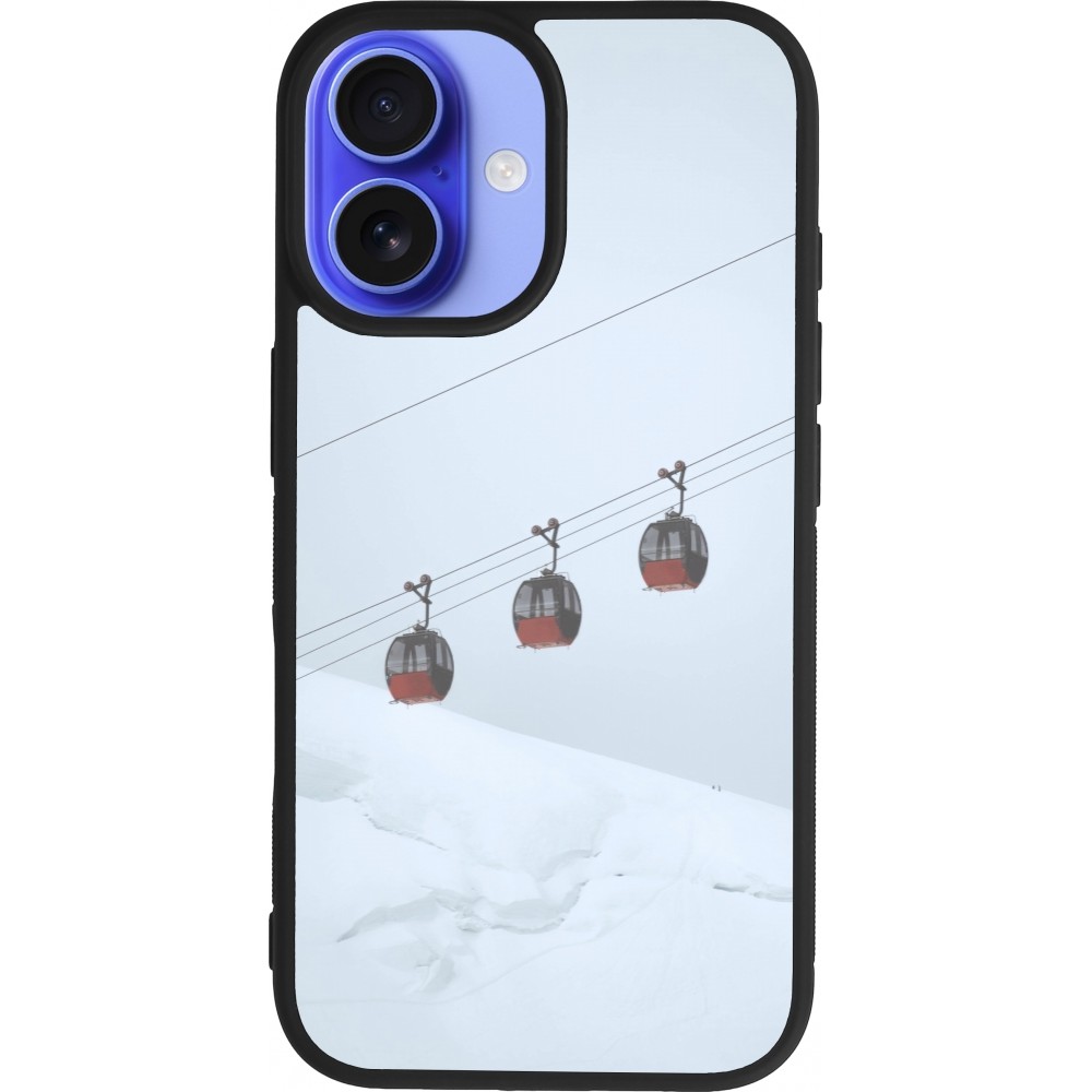 Coque iPhone 16 - Silicone rigide noir Winter 22 ski lift