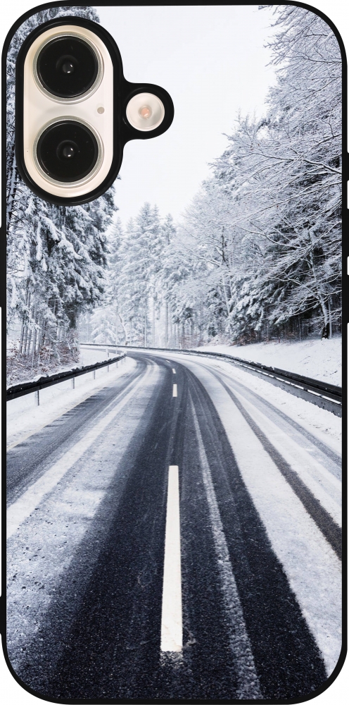 Coque iPhone 16 - Silicone rigide noir Winter 22 Snowy Road