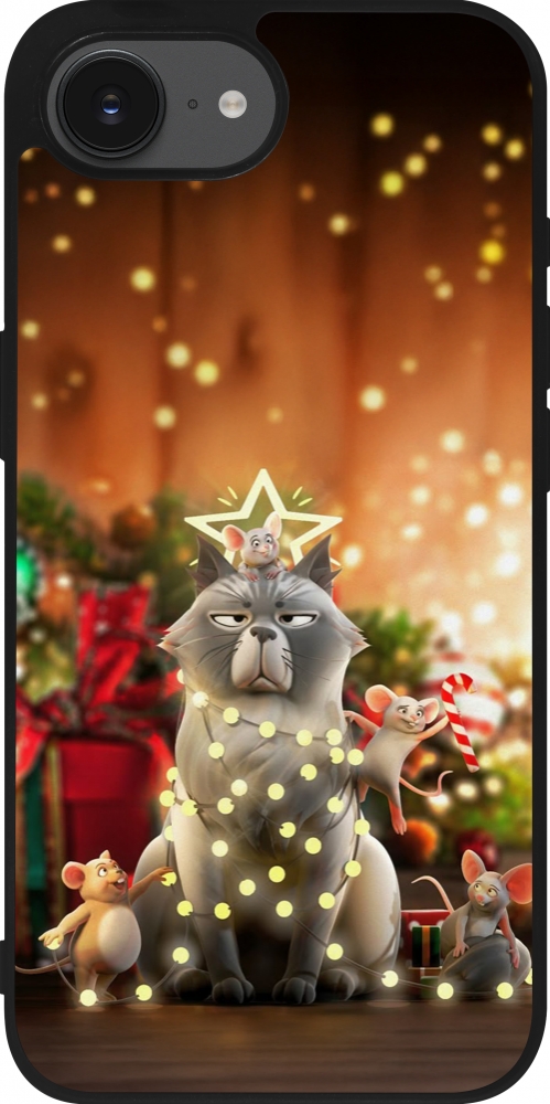 Coque iPhone 16e - Silicone rigide noir Christmas 25 Xmas Cat