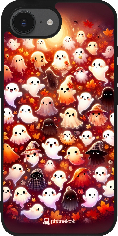 Coque iPhone 17e / 16e - Silicone rigide noir Fantômes automne mignons