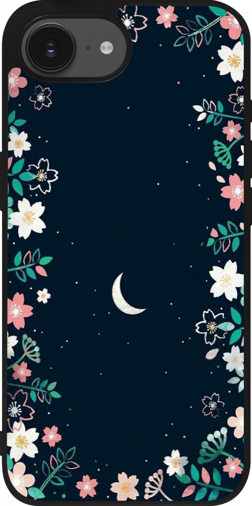 Coque iPhone 17e / 16e - Silicone rigide noir Flowers space