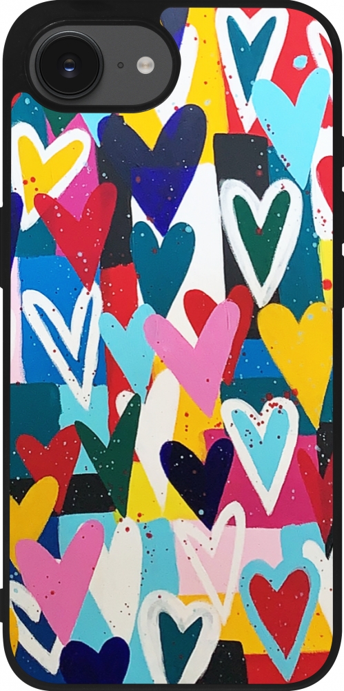 Coque iPhone 17e / 16e - Silicone rigide noir Joyful Hearts
