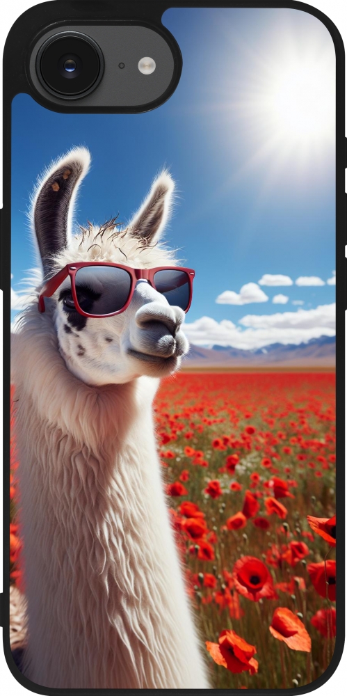 Coque iPhone 17e / 16e - Silicone rigide noir Lama Chic en Coquelicot