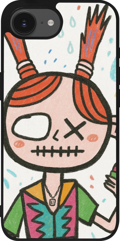 Coque iPhone 17e / 16e - Silicone rigide noir Little Girl Sketch